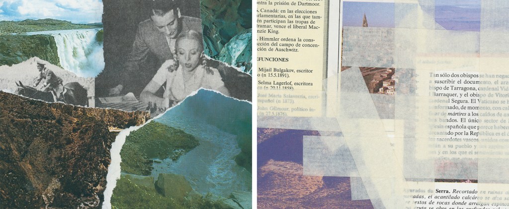 The work examines and dissects two encyclopedias that were in my home: Maravillas Naturales del Mundo [Natural Wonders of the World] (Reader’s Digest, USA, 1983) and Crónicas del Siglo XX [Chronicles of the 20th Century] (Plaza & Janés, Spain, 1987). These books disseminate information using the “technical image” (Flusser, 1990, p.17) as a resource to circulate their discourse, reducing complex landscapes and historical events to edited objects that reinforce ideologies of modernity and prosperity from the perspective of the global North. Both publications shaped my understanding of the world during my childhood and adolescence, yet they ignore my place of origin, my heritage, and my gender. With its scientific and objective gaze, Maravillas Naturales del Mundo organizes landscapes alphabetically through a strict didactic and aesthetic structure, while Crónicas del Siglo XX constructs a linear and Eurocentric narrative marked by wars, technology, power, and patriarchal achievements.