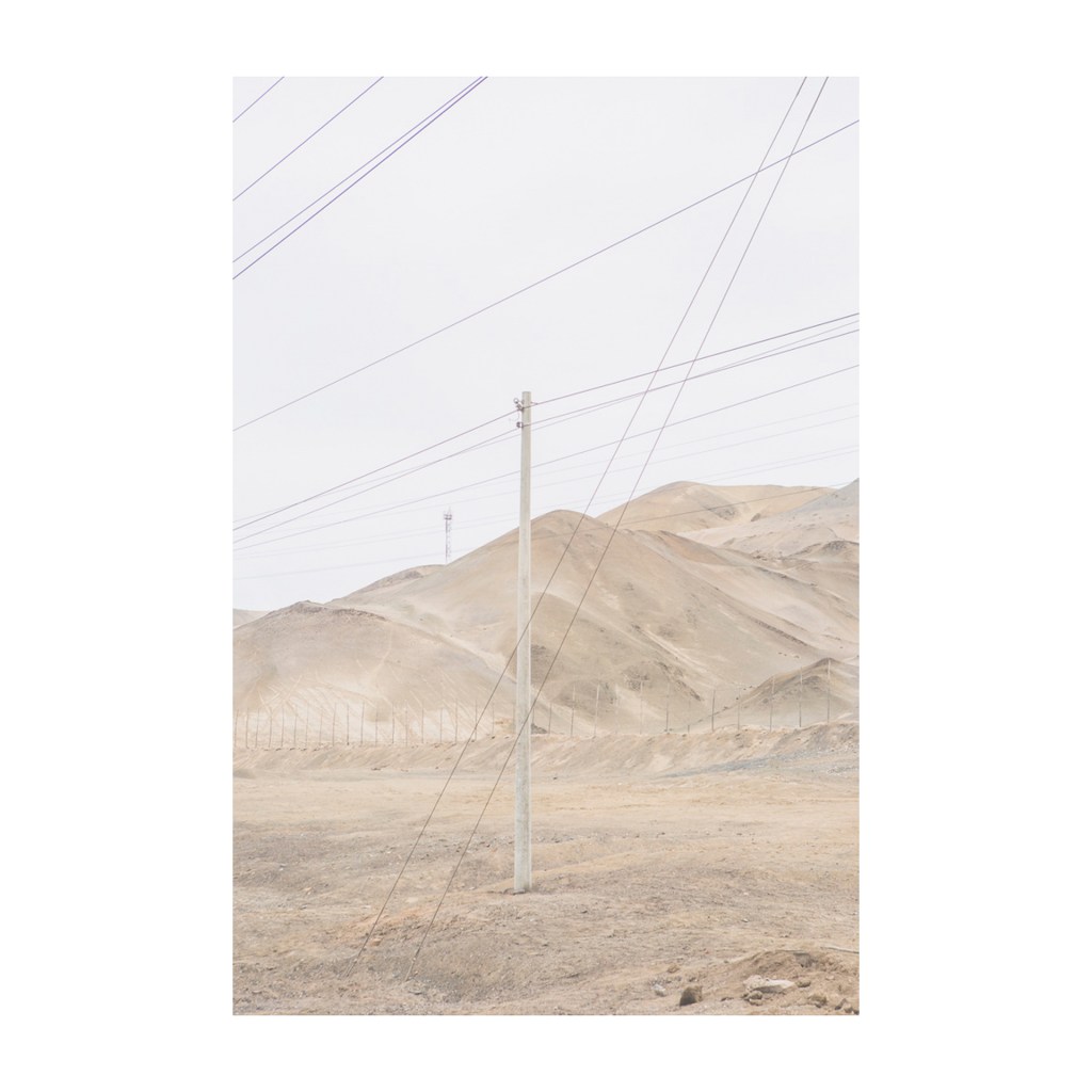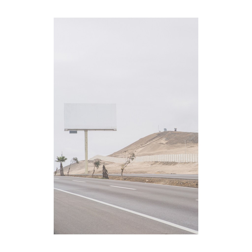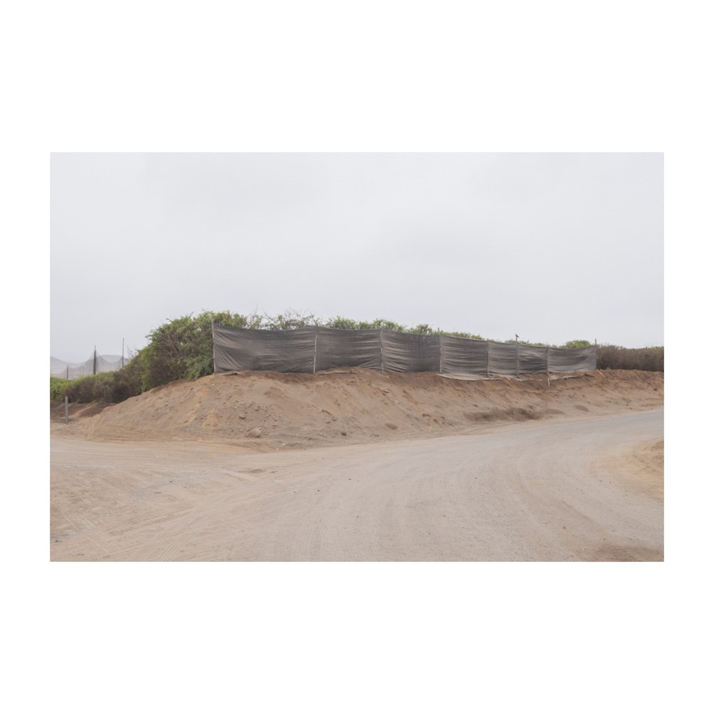 Perímetro Sur [Perimeter South] documents the boundary zones toward the southern edge of Metropolitan Lima. The work explores the landscape as a testimony to the apparent social and economic improvement brought by the industrial boom that took place in Peru between 2000 and 2015. The images reveal an imperious human need to delimit the vast desert terrain, where dunes and fog blur the limits and borders of property. The interventions leave traces on the surface and in the depths, revealing a transformation of the littoral that emerges between exploitation and abandonment in the name of modernity.